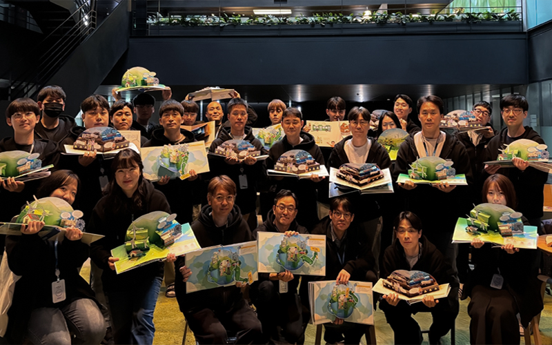 On this day, HUMAX Networks employees were divided into several groups, each taking on a role and making and practicing sharing. At the Majang-dong Livestock Products Center, 60 employees made 100 boxes of kimchi with care, and at the Hayan Village Community Center in Geumgok-dong, Seongnam-si, 60 employees made 150 boxes of dumpling meal kits by hand, and delivered them to local residents. In addition, 2,000 briquettes were delivered to Guryong Village in Gaepo-dong, spreading warmth to underprivileged neighbors everywhere. 40 employees also created pop-up books on the topic of environmental protection at the company building to be delivered to local children. It was a proud time to gather together innocent hands in the hopes of helping foster children’s creativity and environmental awareness. This 5th anniversary event brought in over 25 million won in sponsorships and donations, and it was a precious time for executives and employees to feel a deep sense of accomplishment and joy through volunteer work and sharing.